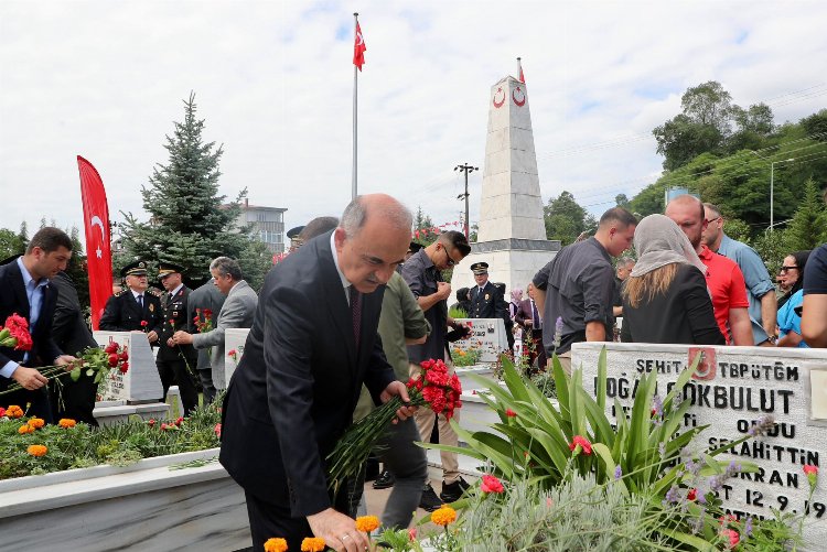 Şehitlikte düzenlenen programda daha sonra Vali Muammer Erol ve protokol mensupları şehit mezarlarına karanfil bıraktı. Vali Erol, şehit aileleri ve gazilerle yakından ilgilenerek hal ve hatırlarını sordu.