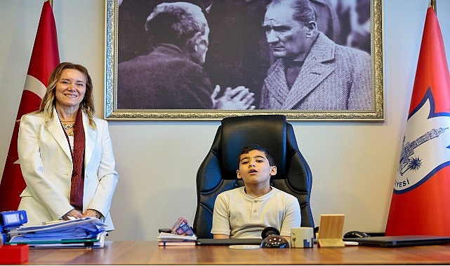 Konak Belediye Başkanı Nilüfer Çınarlı Mutlu, 23 Nisan Ulusal Egemenlik ve Çocuk Bayramı nedeniyle makamında ağırladığı çocuklara koltuğunu devretti. Makam koltuğuna oturan çocuklar, kütüphanelerden spor alanlarına, pak bir etraftan yeni park alanlarına, hayvan haklarının korunmasından yeşil alanlara kadar gerçekleşmesini istedikleri taleplerini Lider Mutlu’ya ilettiler. Bir kız öğrencinin “Dünyada barış olmasını isterdim” dileği ise büyük alkış aldı. Keyifli bir sohbet ortamında gerçekleşen programda Lider Memnun, çeşitli armağanlar sunduğu çocuklara daha hoş bir gelecek bırakabilmek için çok çalışacaklarının kelamını verdi ve bayramlarını kutladı.