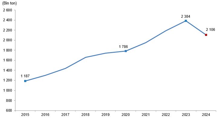 Son on yıla ait kırmızı et üretim iddiaları incelendiğinde, toplam kırmızı et üretiminin 2015 yılında 1 milyon 187 bin 18 ton iken 2024 yılında 2 milyon 105 bin 895 ton olarak gerçekleştiği görülmektedir.