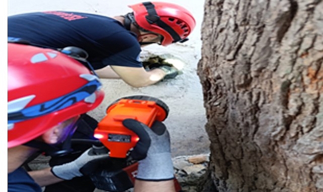 İzmir Büyükşehir Belediyesi İtfaiye Dairesi Başkanlığı takımları, Konak Altınordu Mahallesi Anafartalar Caddesi’ndeki Hacı Veli Mumyakmaz Camii’nin duvarı içerisinde yer alan havalandırma bacasından kedi sesi geldiği ihbarı üzerine olay yerine gitti. Merkez İtfaiye Grubu’ndaki Dağda Arama Kurtarma aracı ile olay yerine gelen gruplar, erişilmesi sıkıntı yerlerde kullanılan, yılan kamera olarak da isimlendirilen kamera ile kedinin yerini belirlemek için çalışmalara başladı.