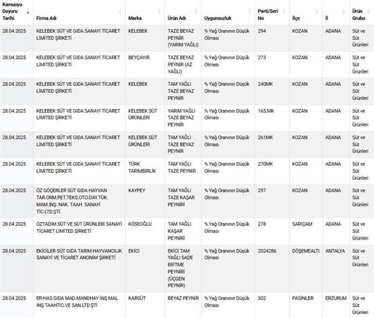 Milliyet.com.tr/ÖZEL Tarım ve Orman Bakanlığı gıdada taklit ve tağşiş yapılan eserler listesini her geçen süreçte yeniliyor. Son listede besinde sahtecilikler pes dedirtti. Listede en dikkat çeken ise ünlü bir peynir markasının tam yağlı sade eritme peynirinde (üçgen peynir) yapılan kontrollerde yağ oranının düşük çıkması oldu.