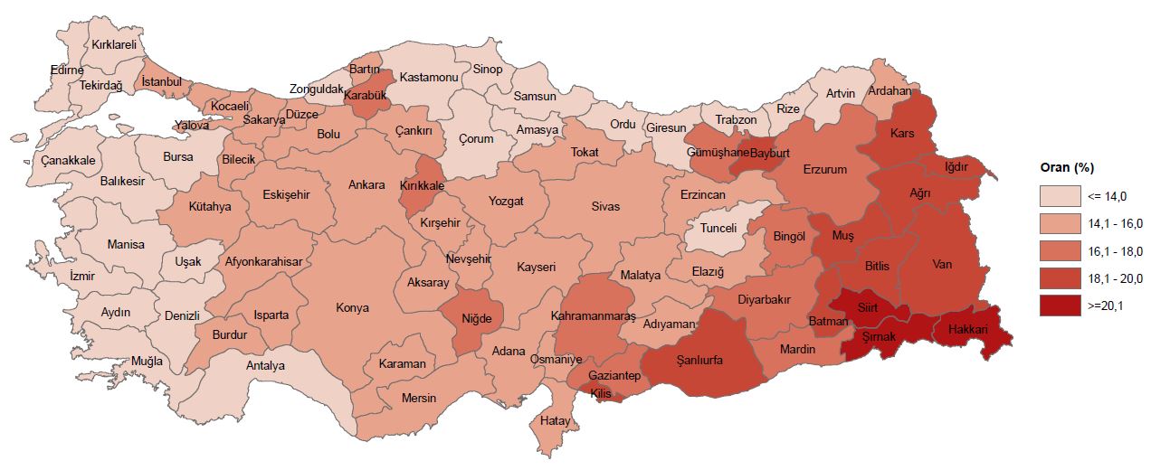 İllere nazaran genç nüfus oranı, 2024
