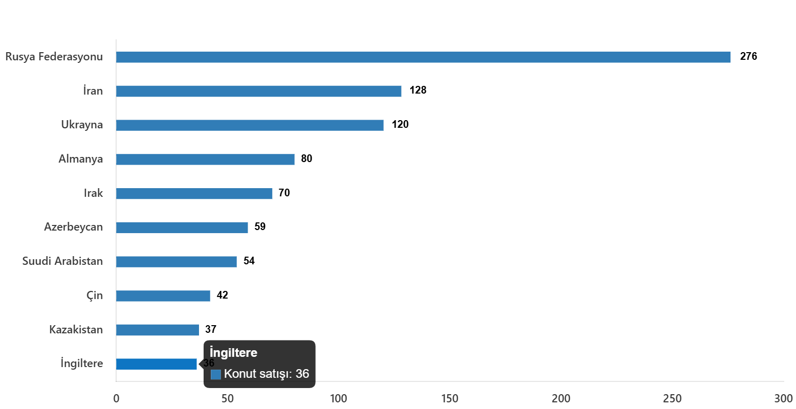Ülke uyruklarına nazaran en çok konut satışı Rusya Federasyonu vatandaşlarına yapıldı