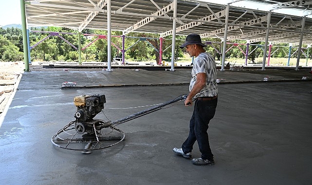 Zemin betonunun döküldüğü ve üst kısmının büyük ölçüde kapandığı pazar yerinde çalışanlarla selamlaşan Lider Topaloğlu, çalışmalarda gelinen son nokta hakkında meclis üyelerinden bilgi aldı.